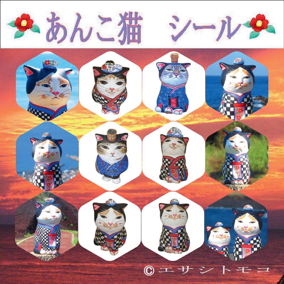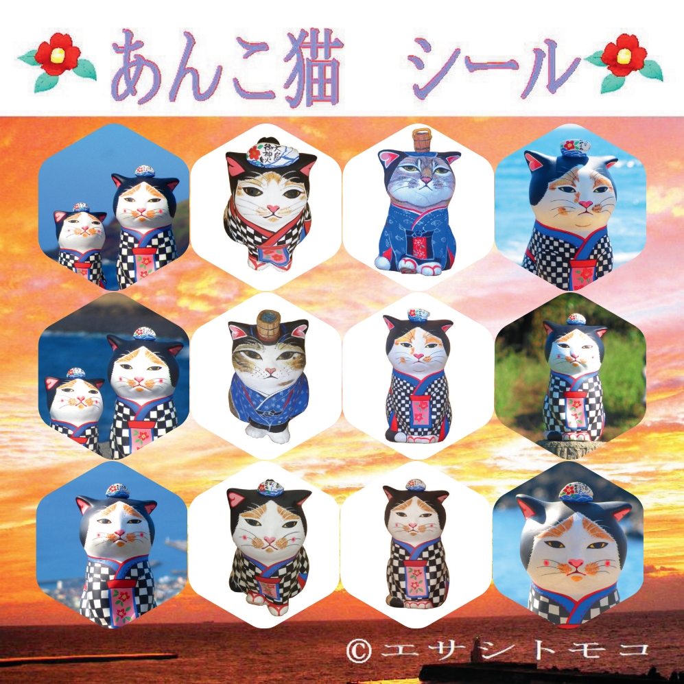 あんこ猫シールは種類8色 色々のパターンがあるよ