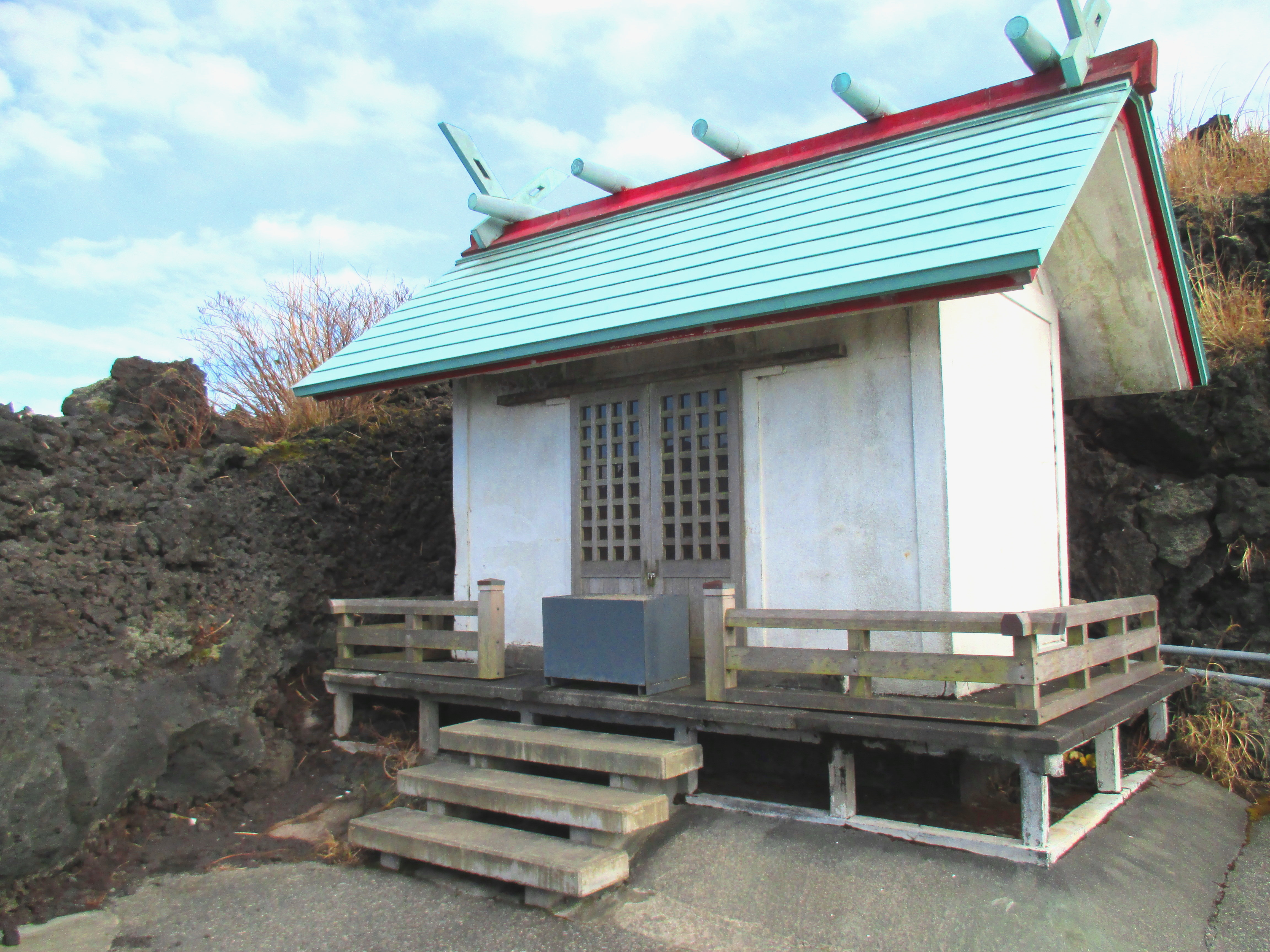 この三原神社は火口からすぐそばにあり、溶岩が三原神社をさけて通ったと有名な話です。