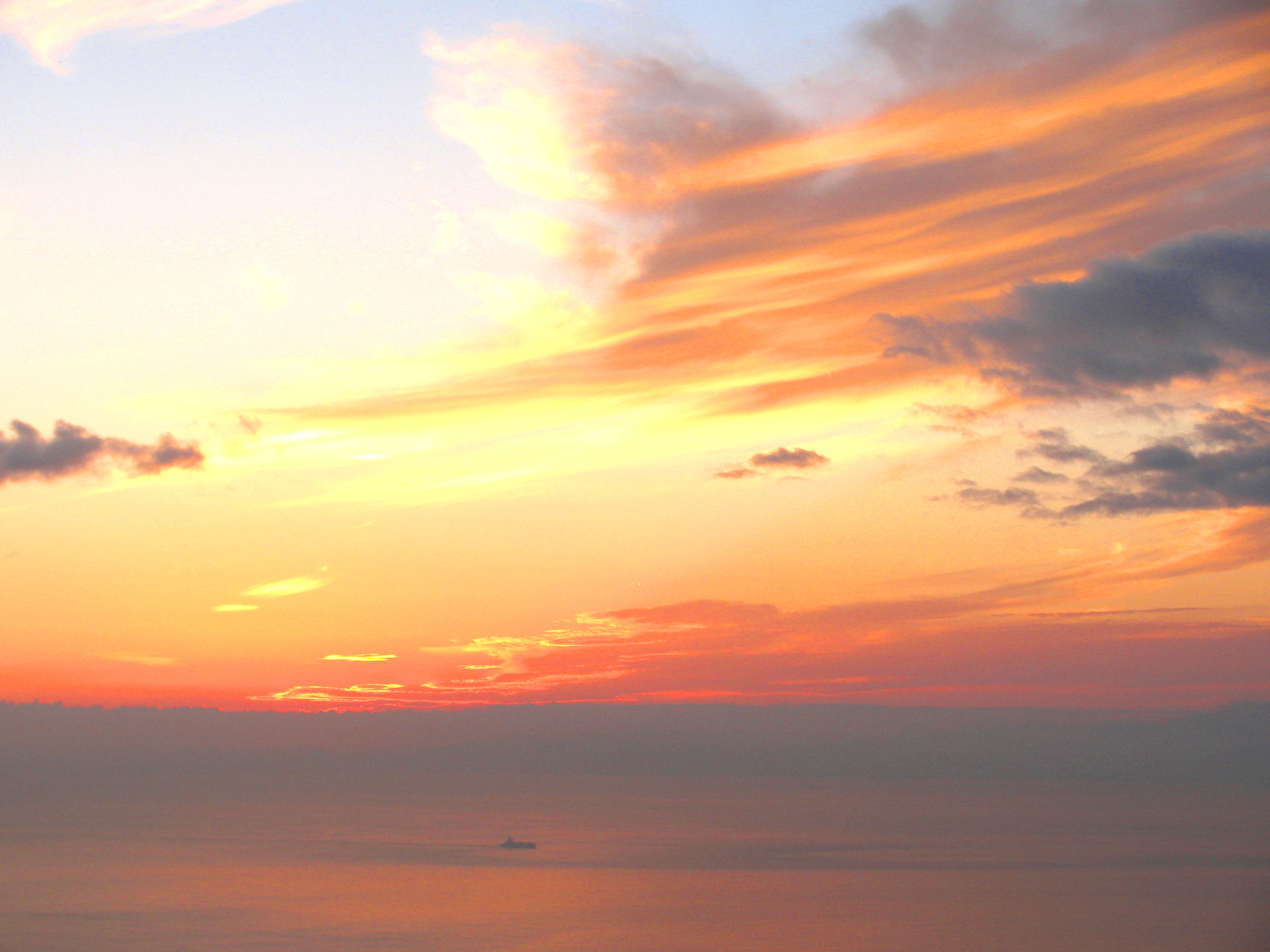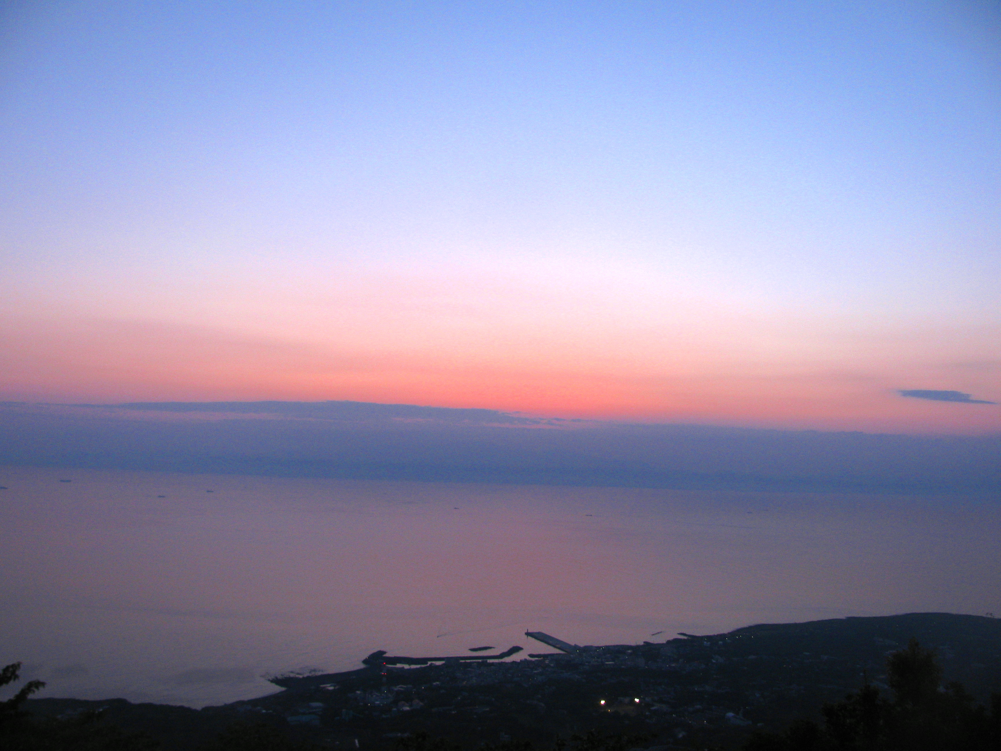 海側は天気が良いと利島、新島、式根島、神津島が見え、空気が澄んでいると三宅島も見えます。朝陽が反射した雲とみると絶景ですよ。