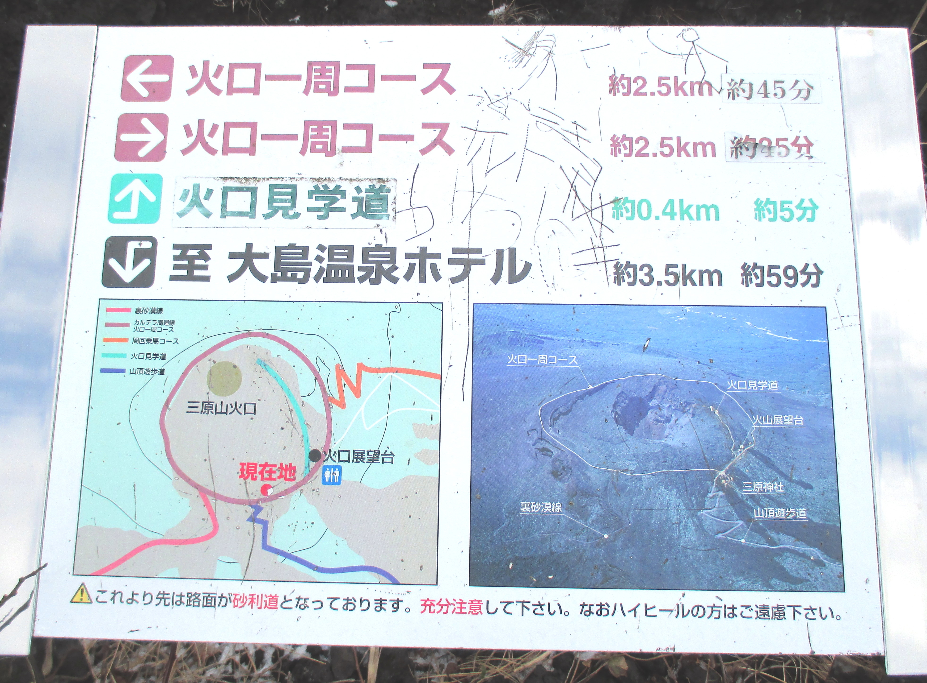 三原山山頂口に着いたら、徒歩で火口等を見るか、三原山を見てから次の観光場所に移動するかを判断します。